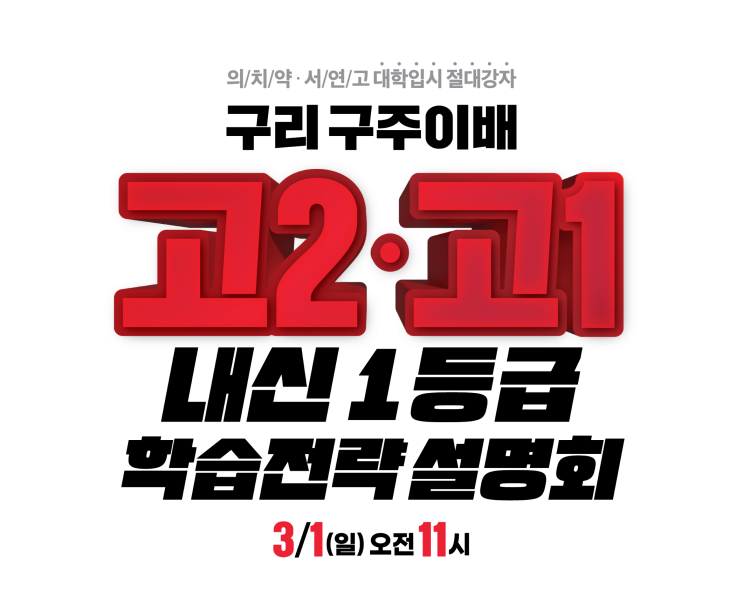 [구리구주이배]고1,고2 내신1등급 학습전략 설명회_03/01(일) 오전11시