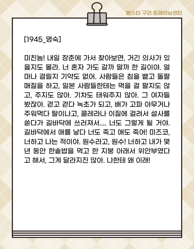 [구리연기학원/여자 희곡 독백] 배삼식 作 1945, 명숙