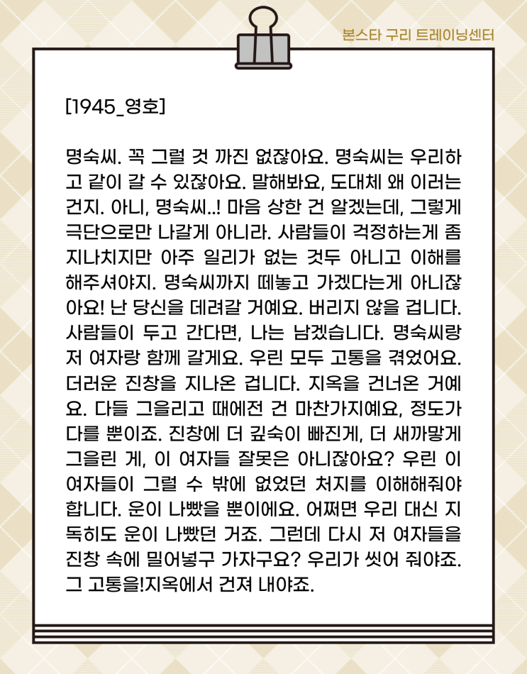 [구리연기학원/남자 희곡 독백] 배삼식 作 1945, 영호