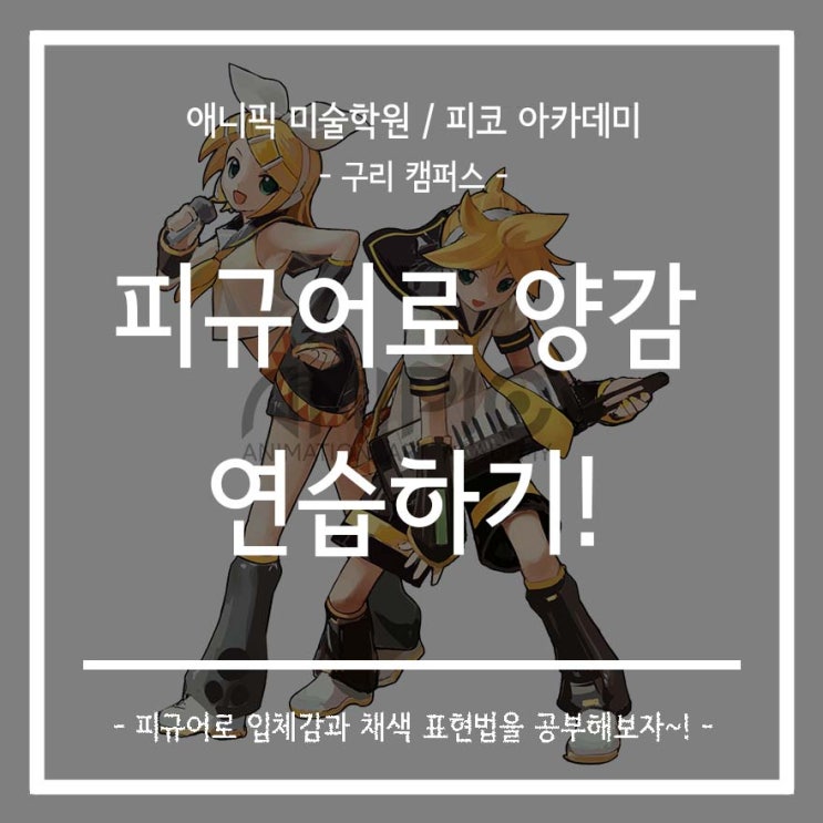 안녕하세요~ 구리 별내 미술학원 / 돌다리 사거리 웹툰 학원 애니픽 미술학원 피코 아카데미입니다! 이번 주가 약간 추웠는데, 오늘 날이 너무 포근해서 기분도 따뜻해지는 하루입니다. 다들 좋은 주말 보내시길 바랍니다~! 오늘 소개할 수업은 <피규어로 양감 연습하기>입니다. 피규어는 다양한 유형의 작품에서 등장하는 캐릭터를 실물 3D 모형으로 나타낸 것을 말합니다. 피규어는 3D이기 때문에, 어떠한 방향에서도 관찰할 수 있다는 특징이 있습니다. 그래서 입체감과 양감을 연습하기에 좋은 자료가 되기도 하는데요~ 단계를 같이 보면서 설명하도록 하겠습니다! 가장 먼저. 스케치 단계입니다! 스케치 단계에서는 라프 단계에서 잡....... <img src="https://blogthumb.pstatic.net/MjAyNjAzMDdfOSAg/MDAxNzcyODYxODgxMzQ3.j_fp883M9OU1Ohus2T23C7nXTrZOgWohzMURCAnTHhkg.TanUMIxFqjaiFnfzyUPjaUs2L0zaFt7U2fv9tCN4RuAg.JPEG/0307_%B4%EB%C7%A5%C0%CC%B9%CC%C1%F6.jpg?type=s3" />