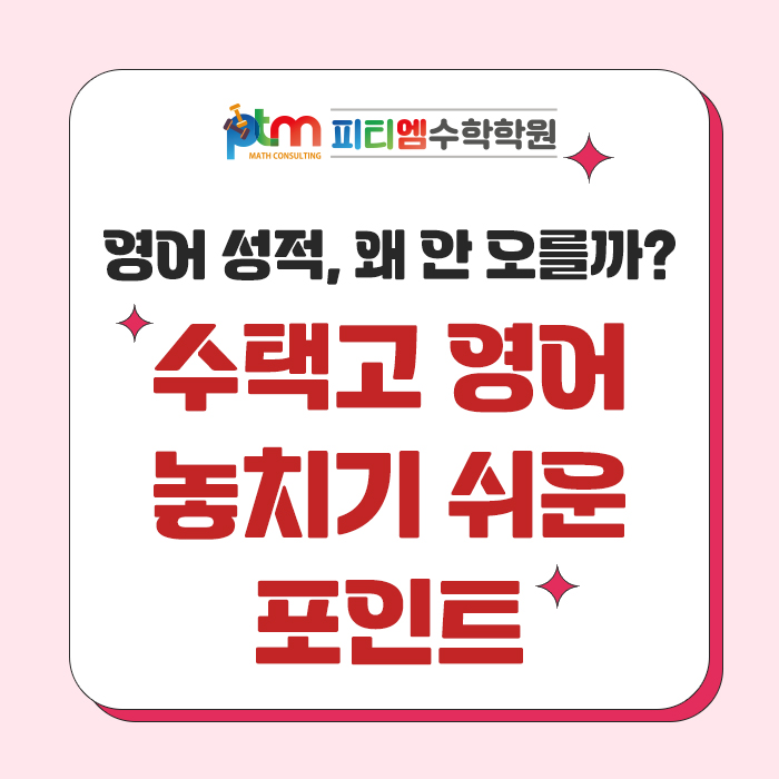 고등학교에 올라가면 많은 학부모들이 같은 고민을 합니다. 중학교때까지는 영어 성적이 괜찮았는데, 고등학교에 들어와서 갑자기 성적이 떨어지는 경우가 생각보다 많기 때문입니다. 특히 수택고 영어 성적에 대해 상담을 해보면 비슷한 이야기가 반복됩니다. "단어도 외우고 문제도 많이 풀었는데 시험 점수가 잘 나오지 않아요" 이런 경우 대부분은 공부량이 부족해서라기보다 공부 방향이 맞지 않는 경우가 많습니다. 수택고 영어 시험은 단순히 문제 풀이 연습만으로는 대비하기 어려운 특징이 있기 때문입니다. 그래서 오늘은 수택고 영어 성적이 잘 오르지 않는 이유와 학부모들이 놓치기 쉬운 포인트를 정리 해 보겠습니다. 수....... <img src="https://blogthumb.pstatic.net/MjAyNjAzMDVfMTkx/MDAxNzcyNjk4NDQ2NTY2.UbAGt69LT8ycL95t76tE4DxZa9cLenhl_Yz9esfSz5Ig.r2pckX7wiahsUJsrDKRaBnQAvRl_IWosUOlj6k7vshog.JPEG/%BC%F6%C5%C3%B0%ED%BF%B5%BE%EE_%B8%DE%C0%CE.jpg?type=s3" />