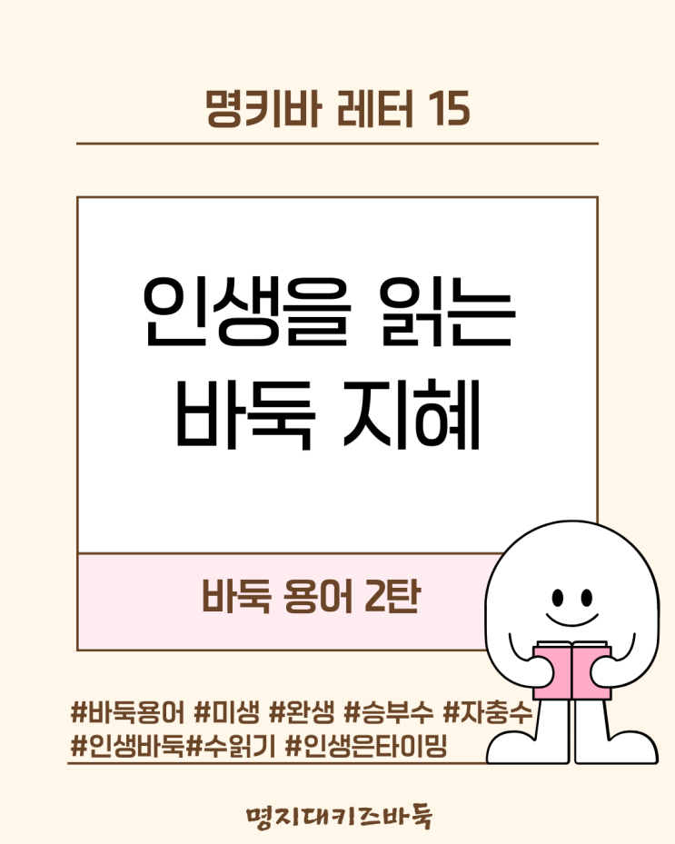 안녕하세요, 갈매바둑학원 명지대키즈바둑입니다. 지난 1탄에서는 바둑의 기본 틀을 잡는 용어들을 알아봤는데요. 오늘은 바둑판을 넘어 드라마, 뉴스, 비즈니스 현장에서 가장 많이 들리는 ‘인생 바둑 용어’ 3가지를 준비했습니다. 단순한 게임 용어를 넘어, 지금 우리 상황에 대입해보면 무릎을 탁 치게 될지도 모릅니다. 1. 미생(未生) : 아직 살지 못한 돌 드라마 제목으로 너무나 유명해진 단어죠? 바둑에서 '미생'은 집이 완벽하게 만들어지지 않아 완전히 살지 못한 상태를 말합니다. 반대말은 완생(完生)입니다. 바둑에서는? 상대에게 공격당할 여지가 있어 끊임없이 보살펴야 하는 돌입니다. 일상에서는? "우린 아직 다....... <img src="https://blogthumb.pstatic.net/MjAyNjAyMTJfMjk4/MDAxNzcwODg1ODE1NTA2.p8Q4gYkX4VqpyvSZv1RjtvjN7-6AWfUu1LMuBAQgkeog.ddtOZgVyOCJfeoIH3xEdVQbNzXXZHeZDMYiElrfEFUcg.PNG/1.png?type=s3" />