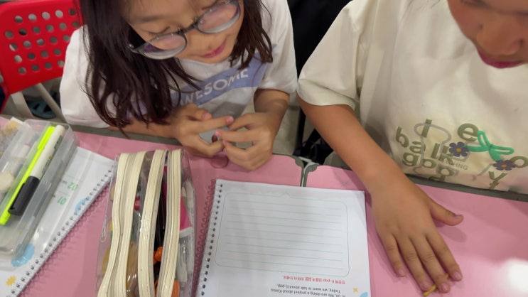 이번 3주차 수업에서는 본격적인 내용에 들어가기 전에, 외국인에게 말을 걸 때 필요한 approach 표현을 다시 한 번 집중적으로 연습했습니다 아이들이 자연스럽게 말할 수 있도록 여러 번 읽고, 거의 외울 수 있을 정도로 반복 연습하는 시간을 가졌어요 이후에는 K-pop 주제로 넘어가 아이들이 좋아하는 아이돌 그룹을 중심으로 간단한 소개 문장을 만들어보는 활동을 진행했습니다 대부분의 아이들이 좋아하는 그룹이 있어서 “왜 좋아하는지”를 직접 써보는 연습도 함께 했어요 ✏️ 영작하는 과정이 아직은 어려워 중간중간 도움을 많이 주긴 했지만, 자신이 좋아하는 가수에 대해 짧은 문장으로라도 표현해보는 경험이 아....... <img src="https://phinf.pstatic.net/image.nmv/blog_2026_04_24_4076/uU9ujuSsBH_01.jpg?type=f480x480" />