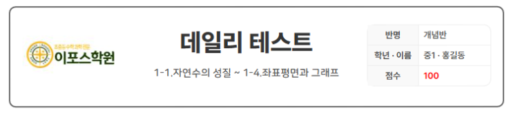 안녕하세요, 초등 · 중등 수학 과학 전문학원, 이포스학원입니다! 중학생인데 수학의 중요성을 모르는 학생은 드뭅니다. 그래서 중등 수학의 경우는 공부를 안 하는 학생보다 열심히 하는데 성적이 안 오르는 경우가 더 많습니다. 그렇기 때문에 학생들이 느끼기에 초등 수학에 비해 성적 향상 속도가 느리거나 어렵다고 생각할 수 있지만, 대부분의 이유는 학습 내용은 심화되었지만, 배운 내용은 제대로 정리되지 못했기 때문입니다! 그래서 저희 학원은 중등 수학 수업을 학생별 ‘관리 중심 수업’으로 운영합니다. 1. 매주 확인하는 위클리 테스트 한 주 동안 배운 내용을 위클리 테스트로 그때그때 점검합니다. (반별로 수준별 데일리 테스....... <img src="https://blogthumb.pstatic.net/MjAyNjAzMTFfMTk1/MDAxNzczMjEwMTY5ODM5.yDNj3X--GxoZm2ZPIA0o39hv2QuBXnDupsirnWDk2vAg.ygOXtjgAyRwgNUFPrKtpRoj4S3XjuYPRsMG5xRwl0OMg.PNG/%C4%B8%C3%B3.PNG?type=s3" />