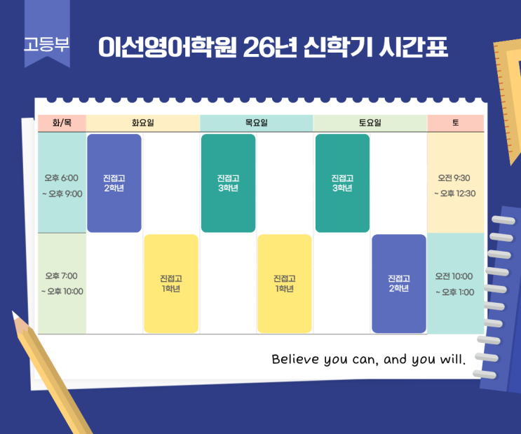 [26년 고등부 신학기 수업 안내(3월 개강)] 의지를 현실로 바꾸는 곳, 이선영어학원입니다.