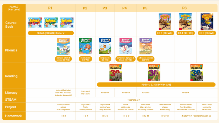 안녕하세요. 플랭영어입니다. 이번 게시글에서는 저희 원에서 진행하고 있는 전체적인 큰들의 교재 로드맵 및 커리큘럼을 소개드리려 합니다. 저희 커리큘럼은 PLANG의 첫 글자를 딴 철자를 시작으로 구성되어 있습니다. Plan Learn Advance Nuture Growrh ✔Plan 단계 | 영어에 익숙해지는 시작 (PLAN_G P1~P6) 플랭 영어학원의 시작은 영어를 ‘공부’가 아닌 ‘언어’로 받아들이는 단계입니다. 경험주의 프로젝트 기반 코스북 수업 알파벳 · 파닉스 · 기초 리딩 자연스럽게 연결 스토리 중심 수업으로 듣기·말하기 기초 형성 STEAM · 프로젝트 활동으로 영어 사용 경험 확대 가정 연계 숙제 시스템 운영 억지 암기 없이 영어 환경에 자....... <img src="https://blogthumb.pstatic.net/MjAyNjAxMjJfMjA0/MDAxNzY5MDQ2MTc2Nzg3.mje7ybGoEOalyxF9prTNVxzPI9wIpeMt3RsyOcbf_Ysg.eaYxglhG8GhJMaV6PlfcS7AW1T0fruDXuZpWmtqAaKUg.PNG/image.png?type=s3" />