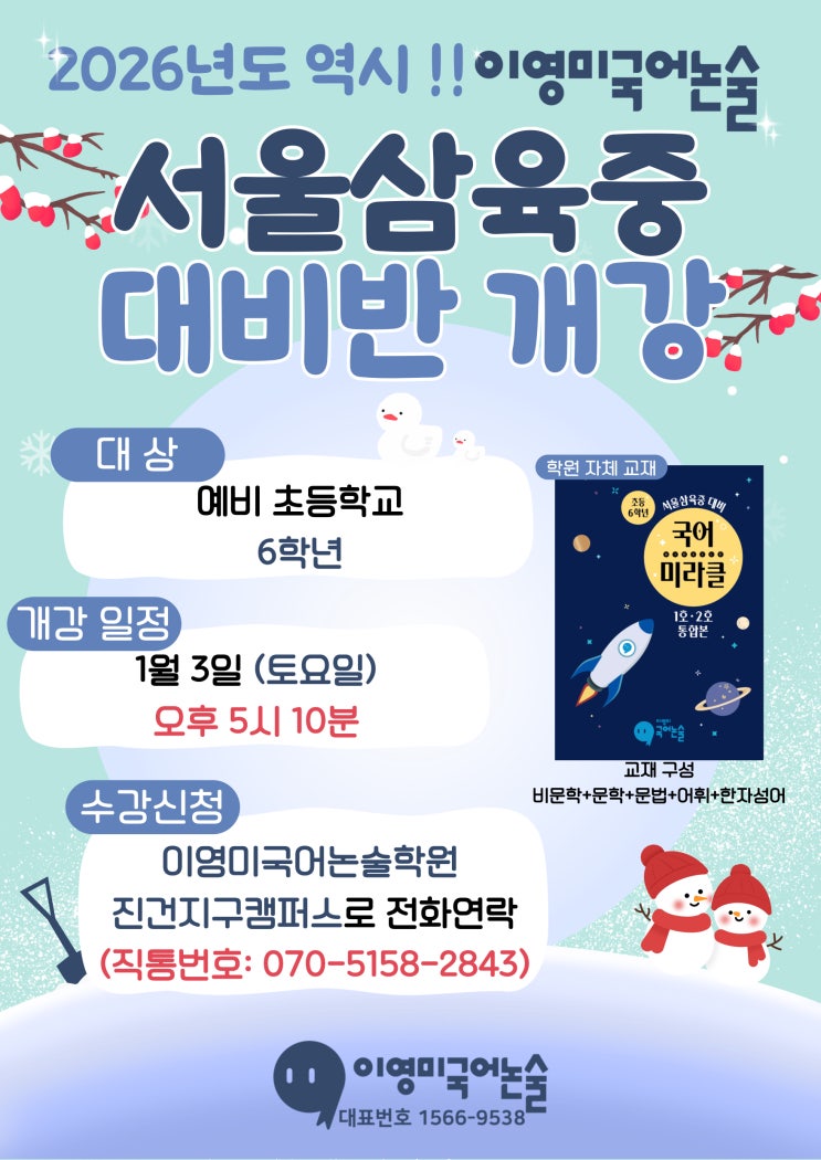 2027학년도 서울삼육중학교 입시 대비반 개강