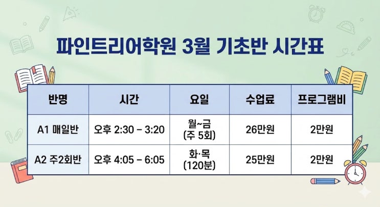 안녕하세요, 다산동 파인트리어학원 이수은 원장입니다.⚠️ "옆집 아이는 원어민과 웃으며 대화하는데, 우리 아이는 알파벳만 쓰고 있나요?" 학부모님, 냉정하게 질문 하나 드려보겠습니다. 초등학교 3학년, 학교에서 처음 영어를 마주할 때 우리 아이가 느낄 감정이 "설렘"일까요, 아니면 "두려움"일까요? 준비 없이 맞이하는 영어는 아이에게 넘을 수 없는 거대한 벽이 됩니다. 친구들이 원어민 선생님과 자연스럽게 농담할 때, 혼자만 무슨 말인지 몰라 고개를 숙이고 있는 아이의 뒷모습을 상상해 보세요. 3월, 이 결정적인 골든타임을 놓치면 아이가 잃어버리는 것은 단순한 점수가 아니라 **'영어에 대....... <img src="https://blogthumb.pstatic.net/MjAyNjAxMjhfMTk0/MDAxNzY5NTk4MDQxNTcw.alw_vta_kUq_4UtkgM27M5ff-I1yqAiVxPWVC9ElpI4g.bjHW43mpkQ-tmzV0Qtk_3GezIKaCo35K31Hr-snvzSgg.JPEG/KakaoTalk_20260127_014532623.jpg?type=s3" />
