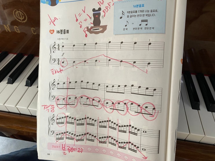 작은 음표 속에 담긴 큰 사랑과 성장이 피어납니다 아이들의 한 걸음 한 걸음이 소중한 기적으로 자라나는 곳, 세교라라음악학원입니다 [필봉초 피아노학원] 필봉초 2학년 남O현 2/27 레슨일지 안녕하세요 오산세교피아노학원 세교라라음악학원 RaRa원장이에요:) 오늘은 필봉초 2학년 친구와 함께 16분음표에 대해 배워보았어요 음악의 기초를 다지는 중요한 시간이었답니다. 16분음표란 무엇인가? 16분음표는 음악에서 매우 중요한 역할을 해요 4분음표가 한 박자라면, 16분음표는 그 박자를 4등분한 것이죠 즉, 16분음표는 한 박자 안에 4개의 음이 들어간다는 뜻이에요 이론적으로는 간단하지만, 실제로 연주할 때는 손가락의 독립성과 리듬 감....... <img src="https://blogthumb.pstatic.net/MjAyNjAzMDFfMjA0/MDAxNzcyMzQ4NDE5NDQ4.Pu9NnlawVf2c9pTxpjVTMtTX_4DWut8cFbChIr7vzQUg.UN6SBY2dY4fEQtVi_hUcO2ZkrpCte7Y9AGElsJo--bYg.JPEG/KakaoTalk_20260301_153753172.jpg?type=s3" />