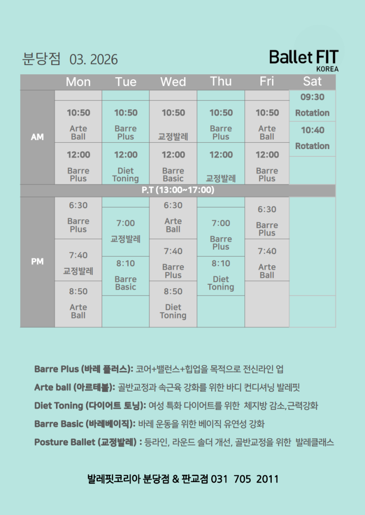스프링 시즌이 왔네요~^^ 벌써 봄인데 아직 운동 유목민이시라구요? 여기 발레핏코리아가 있잖아요~^^ 근력강화! 체지방감소! 라인교정! 체형관리! 모두 한방에 바레운동으로 마무리 해드립니다~! 운동문의는 유선으로 평일 9시~21시 토요일 9시~12시 031.705.2011 010.9196.9050 두 지점 모두 공유 가능~!! <img src="https://blogthumb.pstatic.net/MjAyNjAyMjVfMTU5/MDAxNzcyMDA3MTgwMDE3.b00_hl8emoJv_DnrXT3Sv4tjjw7AgkpKatGPOLDZDmQg.AhVxAQNYgYmuJMi6aZhpFrQNUnjhOQotJXdfyV7AQiMg.PNG/%BA%D0%B4%E73%BF%F9.PNG?type=s3" />