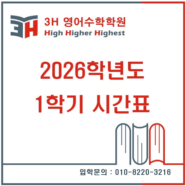 3H영어수학학원의 장점 ㄴ 1. 체계적인 수준별 수업(클릭!) ㄴ 2. 매주 진행되는 주말고사(클릭!) ㄴ 3. 중2~고1 전과목 시험대비(클릭!) ㄴ 4. 효과적인 수행평가 관리(클릭!) ㄴ 5. 다양한 방학 특강(클릭!) ㄴ 6. 수준 높은 국어 수업(클릭!) ㄴ 7. 배곧 최고 수준의 자습실(클릭!) <<배곧 최고의 학원을 꿈꾸는 3H영어수학학원, 이렇게 성장했습니다!>> https://blog.naver.com/3h_baegot/223769004871 ※ 학원 홍보를 위한 필수 기재사항 학원명 : 3H영어수학학원 등록번호 : 시 1297 호 사업자번호 : 358-90-01888 업태 : 교육서비스업 / 종목 : 입시 및 보습 #배곧학원 #배곧 #배곧전과목학원 #배....... <img src="https://blogthumb.pstatic.net/MjAyNjAzMDZfMjU2/MDAxNzcyNzg3OTE2NTY4.Ayf1dy60aKoL5XruIw18_W8w3H9DvgBTov9iweWb64Ag.5aVUt09AhbKWNpRzJJ7xUvs6GZy_8Hwp1_Gug0swFXMg.JPEG/20260301%BD%C3%B0%A3%C7%A5.jpg?type=s3" />