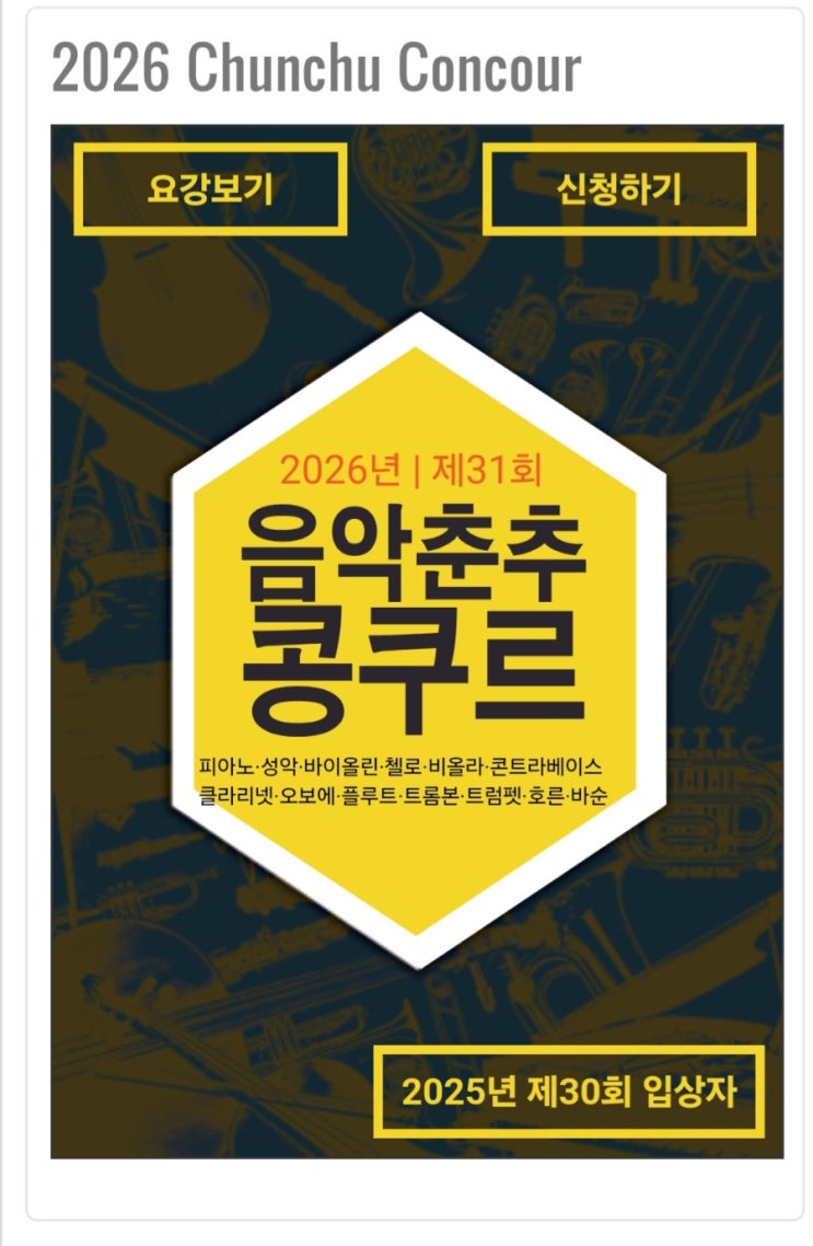 2026 제31회 음악춘추 콩쿠르 요강 정리 주최 : 음악춘추 전통과 권위를 가진 전국 규모 콩쿠르입니다. 2026년 제31회 음악춘추 콩쿠르 예선일정 #음악춘추콩쿠르 #음악춘추 #음악춘추콩쿨 #음악춘추피아노 #목감피아노 #목감피아노입시 #시흥피아노 #시흥피아노입시 #예쁜소리음악학원 #산현초등학교 <img src="https://blogthumb.pstatic.net/MjAyNjAzMDJfMjky/MDAxNzcyNDE1NTc2Mzc0.7OZN85LB8Kgawp4nMo2QvC1uxO16EnaAHelKUGmdW-4g.AxDtkqKLgV73gmgggyIfBU78nUUqGnY2BoTaTSGFwtQg.JPEG/Screenshot%A3%DF20260302%A3%DF102752%A3%DFNAVER.jpg?type=s3" />