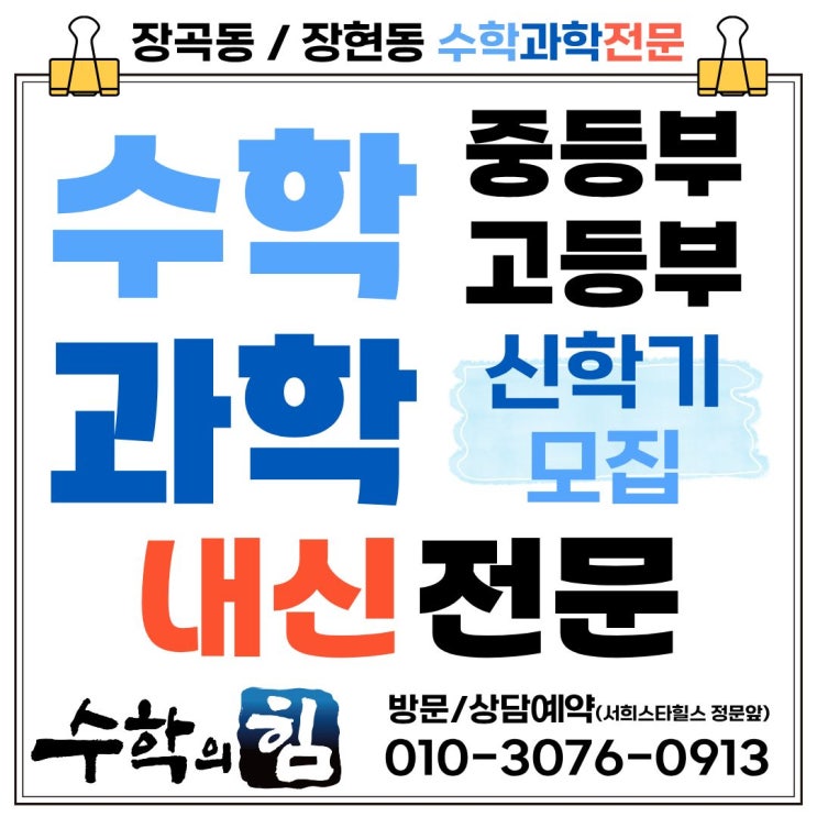 [수학의힘장현캠퍼스] 장곡동 장현동 중등· 고등 수학 · 고등 과학 내신 전문