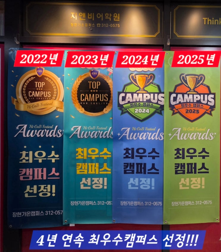 시흥가온초영어학원, 지앤비 장현가온어학원, 4년 연속 '전국 최우수 캠퍼스' 선정!