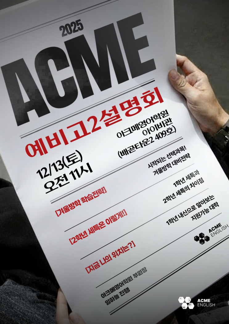 2026 아크메영어학원 설명회 안내 - 예비고1, 예비고2, 예비고3