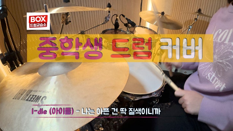 안녕하세요 BOX 드럼교습소입니다. 새해 복 많이 받으세요 ~^^ 이 번 영상은 i-dle (아이들) - 나는 아픈 건 딱 질색이니까 중학생 수강생 드럼커버 영상입니다. 빠른 템포와 강한 비트가 인상적인 곡이라 체력과 정확한 박자 유지가 중요한데요, 이번 연주에서는 ✔️ 안정적인 기본 리듬 ✔️ 빠른 구간에서의 정확한 스틱 컨트룰 ✔️ 곡 분위기를 살리는 다이내믹 표현 에 집중하며 레슨을 진행했습니다 특히 후렴구에서는 에너지 넘치는 리듬으로 곡의 분위기를 제대로 살려주었고, 중학생임에도 불구하고 집중력 있는 연주를 보여주었습니다 학생 드럼레슨에서는 단순히 곡만 완성하는 것이 아니라 리듬 이해, 박자 안전감....... <img src="https://blogthumb.pstatic.net/MjAyNjAyMTZfMTMx/MDAxNzcxMjQ3MjkzNDA5.GyicGR3u7QNAd1lTw3z-oW6ipmxYn9R4HBcqkXQUx1Yg.Rj20Z95jKnX21U6OU7u-pjiVaYI63k-AjVhRSAfVDEEg.JPEG/55.jpg?type=s3" />