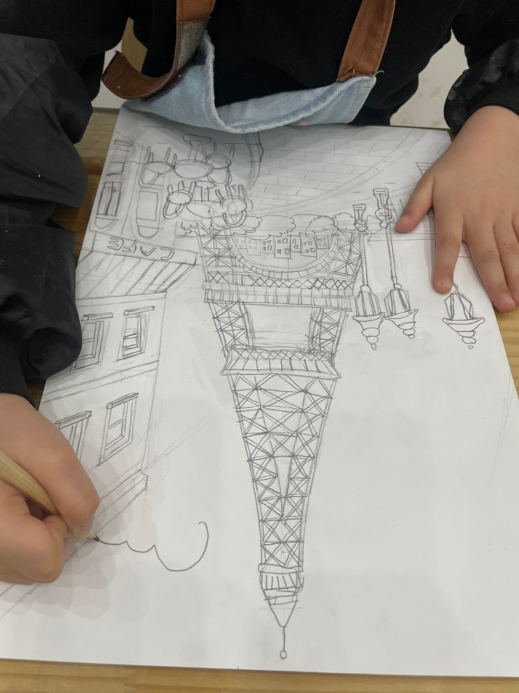 이번 수업에서는 세계 여러 나라를 대표하는 건축물을 떠올리며 건축물 스케치 수업을 진행했습니다. 아이들에게 “우리가 알고 있는 나라의 대표 건축물은 무엇이 있을까?” 질문을 던지자 에펠탑, 자유의 여신상, 베르사유 궁전 등 아이들 입에서 다양한 건축물들이 나왔습니다. 건축물은 단순한 건물이 아니라 그 나라를 상징하고 기억하게 하는 중요한 존재라는 것도 함께 이야기해 보았습니다. 아이들은 건축물의 구조를 자세히 관찰하며 기둥, 창문, 장식, 철 구조까지 하나하나 세밀하게 스케치하기 시작했습니다. 특히 에펠탑의 철 구조 패턴을 작은 선들로 반복해 표현하며 아이들의 집중력과 관찰력이 돋보이는 시간이었습니다. 또 어....... <img src="https://blogthumb.pstatic.net/MjAyNjAzMTRfMTA2/MDAxNzczNDcyMDQzODMw.GfY8qxwiJMt9cONjYKPxklvMRVJp7GL2o-K2-J4QG8Ug.Mmz52ZX2vMn4YX0bR8kgySAG_Iuji44ws9phyXe3ST8g.JPEG/IMG%A3%DF6671.jpg?type=s3" />