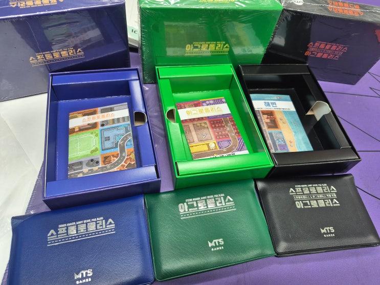 안녕하세요 이번에 MTS 보드게임에서 작은 포켓용 보드게임을 소개하려고 합니다. 상자가 왜 나누어 졌을까 라는 생각을 하는데~ 카드가 마을마다 규칙이 좀 다르고 색상이 좀 다르고 배열하는 방법에 따라 점수 얻는 획등 방법이 달라서 따로 할 필요가 있더라구요~ 그곳에 마을의 특성을 살리려고 색으로 구획을 정해서 표현한 것 같습니다. 스프롤로 폴리스 아그로폴리스 스프롤로폴리스 아그로폴리스 확장 이렇게 세박스가 있는데요~ 카드는 18장으로 양면카드로 이루어져 있습니다. (한면은 구획, 한면은 점수 획득조건) 게임 준비 카드를 모두 섞은 다음, 무작위로 3장을 뽑습니다. 이 카드 3장을 테이블 한쪽에 점수 획득 조건면으로 펼쳐....... <img src="https://blogthumb.pstatic.net/MjAyNTEyMDlfMzMg/MDAxNzY1MjUzNTY4NTk3.DdbMnkGDSa-s2m9MobLnh8gVdONJcN3c3ZxFDcP2Exwg.jd_5f3gagDJbfWYWj7uP7-qEzx0Q9RFmj2yLGdiLm40g.JPEG/KakaoTalk_20251209_125134105.jpg?type=s3" />