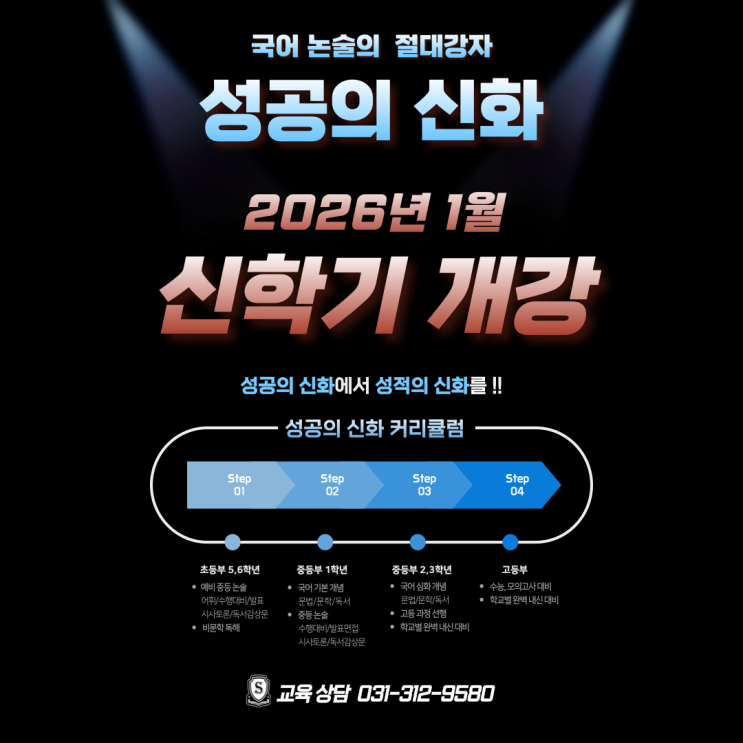 국어 논술의 절대 강자 성공의 신화 신학기 개강 !! 성공의 신화에서 성적의 신화를 만드세요 누구나 공부는 하지만, 모든 학생이 '성적 상승'을 경험하지는 않습니다. 방법이 달라야 결과도 달라지기 때문입니다. 성공의 신화는 단순한 문제풀이가 아닌 "생각하는 힘을 키우는 국어 교육"으로 학생들에게 진짜 실력을 만들어 줍니다. 성공의 신화와 새학기를 맞을 준비가 되셨나요? 망설이시면 늦습니다. 상담문의 자세한 커리큘럼 및 시간표 문의는 학원으로 연락주시면 안내 드리겠습니다. * 수업 중인 경우가 많아, 상담은 예약 후 방문 부탁드립니다. 교육 상담 031) 312 - 9580 성공의신화 국어논술학원 경기도 시흥시....... <img src="https://blogthumb.pstatic.net/MjAyNTEyMDFfNjQg/MDAxNzY0NTc0OTczODc4.6RDMVrKlTSHTWU2h7V8dagy7Pa6NU0qI4w85kWFjbAgg.Wpo2mFY1tON2cX6vyo7MSsk_oFam3JvRJThoIAK2Moog.PNG/2025_%B1%A4%B0%ED%C1%F6-003.png?type=s3" />