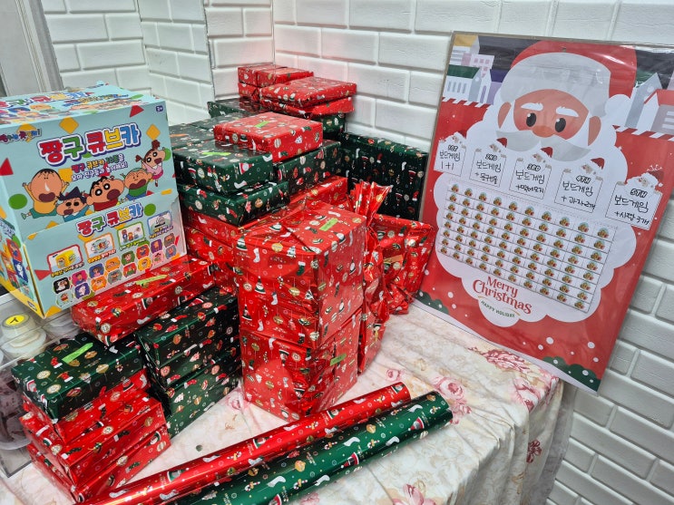 안녕하세요 황쌤창의사고력 수학교습소 입니다. 늘 준비해주었던 크리스 마스 이벤트인데요 이번에 랜덤 뽑기를 준비했어요. 보드게임을 준비해도 ~ 늘 이게 좋다 저게좋다!! 선생님이 입맛대로 골라서 준비해주기 어렵더라구요 이번에 다 포장해놓고 뽑아서 가져가기 했습니다. 포장을 해주고 나니 얼마나 예쁘던지.. 황쌤창의사고력수학 다니는 학생들은 좋겠따~ 원장님이 다 챙겨줘서~ 이벤트에 뭐가 나올지 두구두구!! 선물도 선물이지만 사이드로 떡 메모지 , 사탕, 과자 짱구 큐브카외 문구세트 다수.. 아이들이 빈손으로 가기 아쉬울까봐 이벤트 쿠폰까지 준비했어요!!! 호호호~ 간식쿠폰도 덤이야! 진짜 많이 준비해봤으니 좋아해주길바....... <img src="https://blogthumb.pstatic.net/MjAyNTEyMDRfMTY3/MDAxNzY0ODIzMDM1OTE4.XmA4S0b-oM_Cfk1SLOJ7bsdfIylhbJJK2r9AoCLh42gg.Xtqt-FbyOzKEgA2TUdzXdFkS1V8iB7hT03n3-V4GmH0g.JPEG/KakaoTalk_20251203_171518556.jpg?type=s3" />
