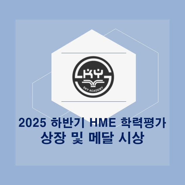 케이투스카이학원 2025 하반기 HME 학력평가 상장 및 메달 시상 안녕하세요. 케이투스카이학원 블로그를 방문해주셔서 감사합니다. 2025년 치른 하반기 HME 학력평가에서 우수한 성적을 받은 학생들에 대한 시상이 있었습니다. 많이 준비해서 기분 좋게 메달도 따고 상장도 받은 우리 친구들 앞으로 더욱 성장할 수 있도록 노력하겠습니다! 추가로 궁금한 점이 있으시면 언제든지 원으로 문의주세요! <img src="https://blogthumb.pstatic.net/MjAyNTEyMjRfMTg5/MDAxNzY2NTc5Mjc4MDc1.PTg5rY1G6AcPsjX7SiazL-CWolaqu3u-gCvNGUpedv0g._uXCvG7uxzJi2wBWYfe1Sl9M9kE_xIUvTYf4jPXD4tkg.PNG/image.png?type=s3" />