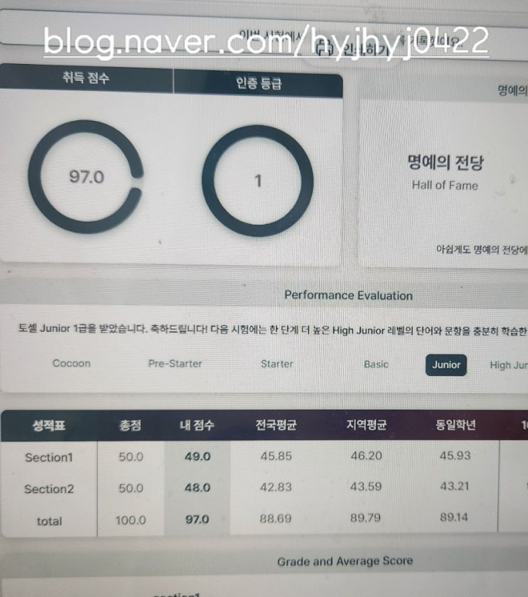 앤글리쉬 중학교 Junior 시험 1등급 고려대 토셀