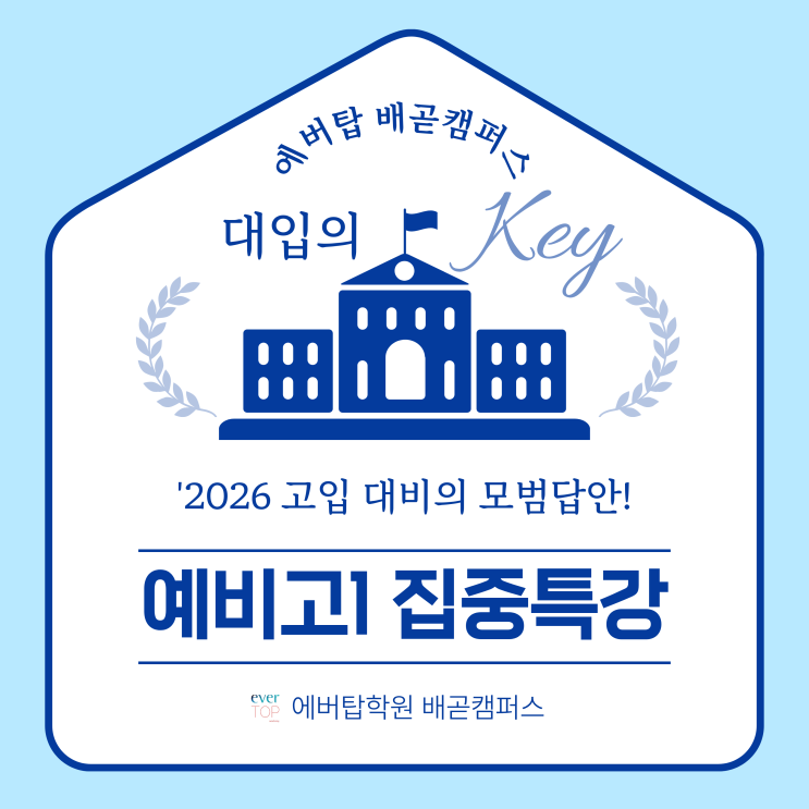 고3들이 수능을 마쳤습니다. 얼마전 배곧고 김OO 학생의 카이스트 합격소식을 필두로 https://blog.naver.com/evertop_baegot/224052387856 에버탑 배곧캠퍼스는 올해에도 의대와 SKY, 서울 / 수도권 주요대학들의 최종 합격소식을 염원하며 기다리고 있습니다. 오늘은 이제 선배들의 뒤를 이어 새로이 예비고1이 될 배곧의 중3들과 영어/수학 고등선행반과 내신집중반의 예비고1 집중특강 수업을 시작한다는 소식을 알립니다. 예비고1 고등영어 선행반 : 1학기 영어 내신/모고 필수과정 영어과에서는 고등학교 영어 공부에 필수적인 ① 고등 기본영문법 이해와 심화 ② 고등 필수/심화 어휘 암기 ③ 수능 주요 유형별 풀이전략 훈련 ④ 서술형 평....... <img src="https://blogthumb.pstatic.net/MjAyNTExMTdfMTUz/MDAxNzYzMzQ2NzMxMTU1.s2tqxRJBf-R9dTbWQ2iiWBh6djDbHSIRCvAdubZGz-Eg.NYbbTKg4-l1X_QCXBR-YRQ7N915vx9RBZ9Xe1b5EzmAg.PNG/1.png?type=s3" />