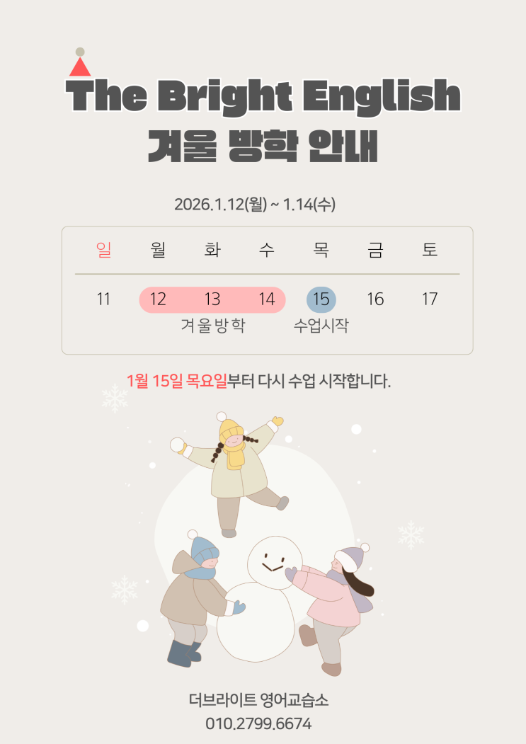 [공지] 2026 더브라이트 잉글리쉬 겨울방학 안내☃