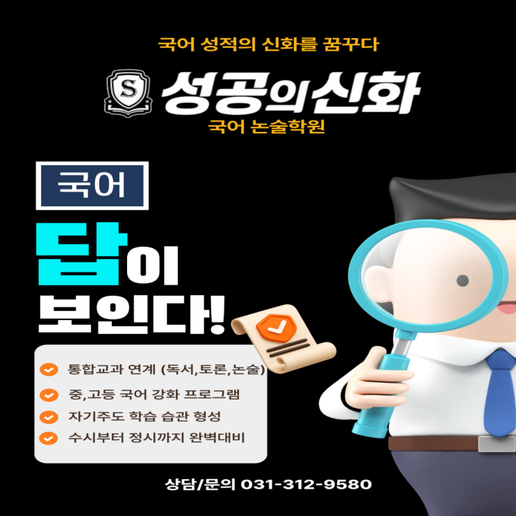 안녕하세요. 성공의 신화 국어논술학원입니다. 국어 성적, 방법이 바뀌면 결과도 바뀝니다. 국어는 단기간에 오르지 않습니다. 문해력,독해력,서술형 대비가 체계적으로 이루어져야 합니다. 성공의 신화 국어논술학원은 초등부터 고등까지 단계별 맞춤 수업으로 학교 내신과 수능형 문제를 동시에 대비합니다. 기초부터 탄탄하게 잡아 한 학년을 완전히 바꿔보세요 성공의 신화가 그 가능성을 실현시켜 줄 든든한 조력자가 되어 드리겠습니다. 자세한 커리큘럼 및 시간표 문의는 학원으로 연락주시면 친절히 안내 드리겠습니다. *수업 중인 경우가 많아, 상담은 예약 후 방문 부탁드립니다. 교육 상담 : 031-312-9580 <img src="https://blogthumb.pstatic.net/MjAyNjAzMjRfMTI0/MDAxNzc0MzM5MDc0Mjg1.vTA4wIxZLMiRj1NuwX_eGOx3ruSisY2G58eiR3RIUSYg.Q5dkcTDi7-iM6PIoSYrfYe-1yMRoof_EOiERzJFyGCkg.PNG/2026_%BA%ED%B7%CE%B1%D7-%B0%D4%BD%C3%BF%EB-024.png?type=s3" />