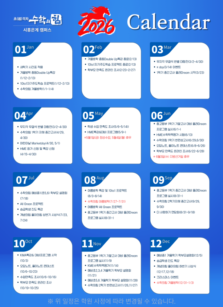 수학의힘 시흥은계캠퍼스 <2026 학사일정과 병오년 새해에 보내드리는 1월의 편지입니다>