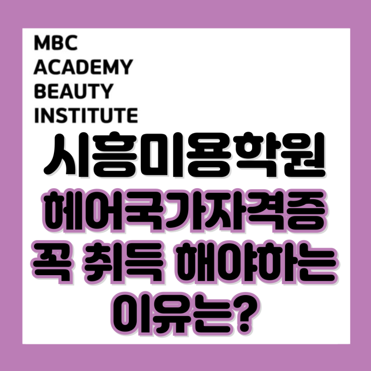 안녕하세요 ! 시흥MBC아카데미 미용학원 입니다 ~ 오늘은 제일 인기많은 헤어국가자격증을 소개시켜드리면서 왜 헤어국가자격증을 꼭 취득해야하는지를 알려드리려고 합니다! 헤어국가자격증 꼭 취득해야하는 이유 안녕하세요 ! 시흥MBC아카데미 미용학원 입니다 ~ 오늘은 제일 인기많은 헤어국가자격증을 소개시켜드리면서 왜 헤어국가자격증을 꼭 취득해야하는지를 알려드리려고 합니다! 미용 분야를 준비하는 분들이라면 한 번쯤은 ‘헤어 국가자격증’에 대해 고민해보셨을 텐데요. 헤어 국가자격증은 미용 자격증 중에서도 활용도가 가장 높고, 취업·창업·진학까지 폭넓게 활용할 수 있는 필수 자격증입니다. 그래서 미용을 처음 시작하는 분....... <img src="https://blogthumb.pstatic.net/MjAyNjAxMDlfMTk5/MDAxNzY3OTM5NTQ1MjYz.IgTA-bGYb0BI4CHEkfV1n2btGG5g24Yc91KYVqoDnJ8g.K6Zz-zcD3nLGUFAt0Kl9iAuZFqFcbdq9Gff5SVa6Et4g.PNG/001.png?type=s3" />
