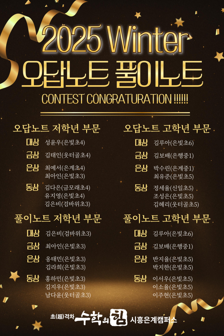 오답노트 풀이노트 콘테스트 수상작 발표-심화학습과 오답관리에 진심인 시흥은계수학학원 수학의힘시흥은계캠퍼스