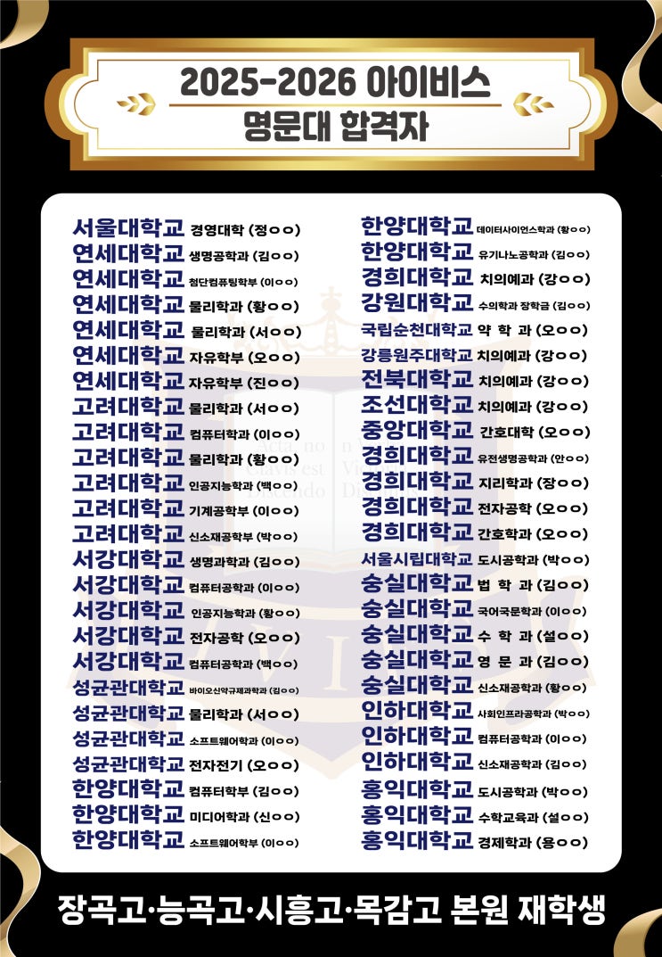 [아이비스 프리미엄 국어영어수학] 2025~2026 상위권 대입 결과