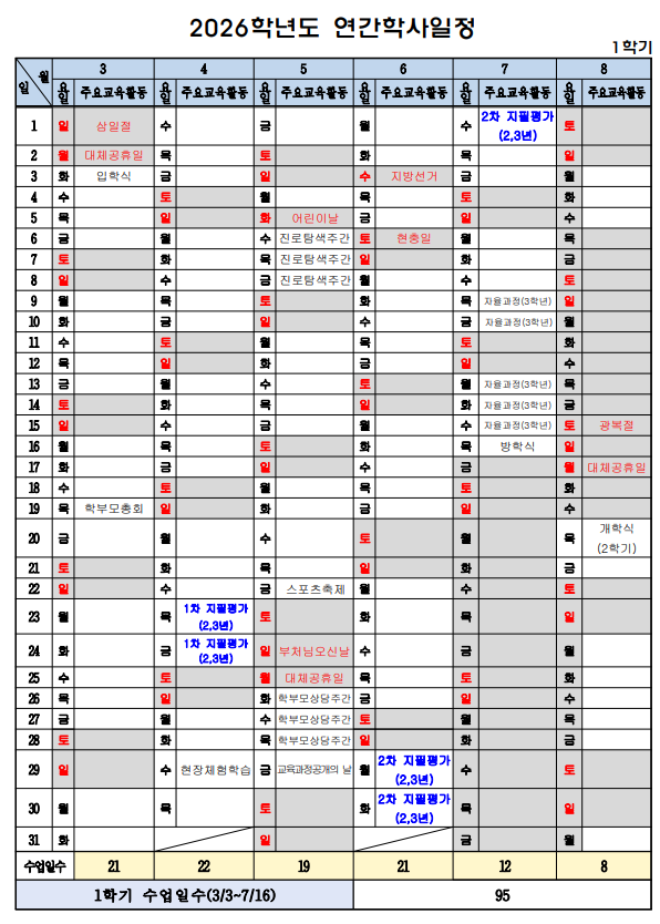 [곡선중 연간학사일정] 곡선중학교 완벽대비!! 뉴빛학원에서
