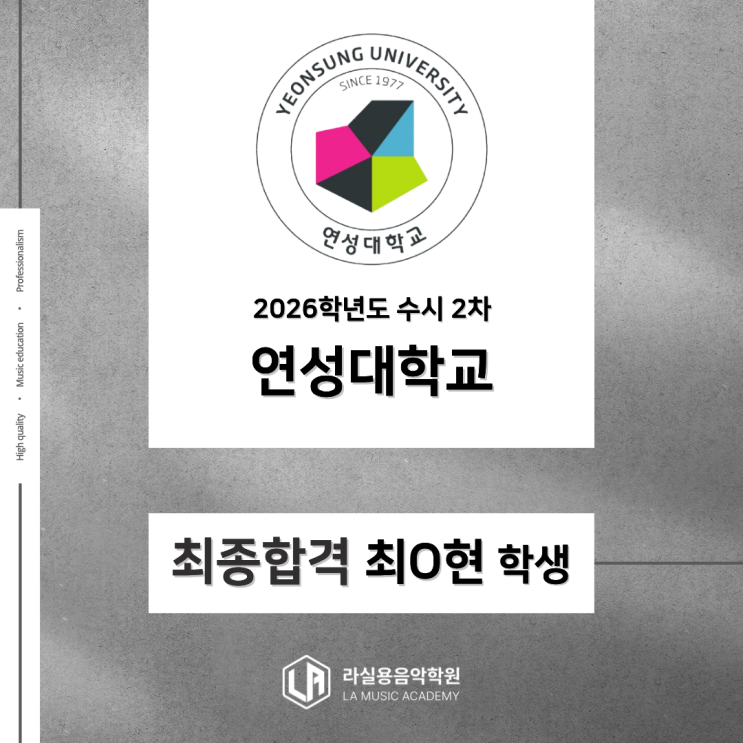 안녕하세요. 맞춤형 1:1 커리큘럼으로 올바른 교육을 제공하는 라실용음악학원 수원망포점입니다. 2026학년도 연성대학교 최종합격소식!! 라실용음악학원 최O현 학생의 연성대 최종합격을 진심으로 축하해요~^^ 라실용음악학원이란? 라실용음악학원은 학생의 현재 실력을 정확히 파악하는 것에서 수업을 시작합니다. 처음부터 무리한 곡이나 방식으로 진행하지않고, 지금 가능한 범위와 당장 정리해야 할 기본 요소를 기준으로 수업의 순서를 설계합니다. 이 과정에서 학생들은 무엇을 먼저 해결해야 하는지, 지금은 무엇에 집중하지 않아도 되는지를 분명히 알게 되고, 불안감 없이 연습과 수업을 이어갈 수 있게 됩니다. 그 결과 수업은 버티는....... <img src="https://blogthumb.pstatic.net/MjAyNjAzMDlfOTIg/MDAxNzczMDQzOTUxNTcz.ENPDogzDadu-PIb4am8siQuHw-oYjp36FIP-CpeHauIg.SOCSYZX3HVg_AYx5gV7hTtDTAjOeTeAuhGmFLxjQYaMg.PNG/%BC%F6%BD%C32%C2%F7_%C3%D6%BC%F6%C7%F6_%BF%AC%BC%BA%B4%EB_%C7%D5%B0%DD%C4%AB%B5%E5.png?type=s3" />