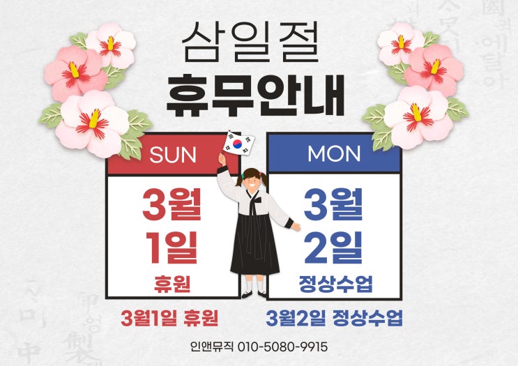 인앤뮤직 음악학원|삼일절 휴원 안내