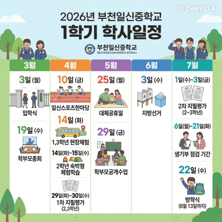 26년 부천일신중 1학기 학사일정