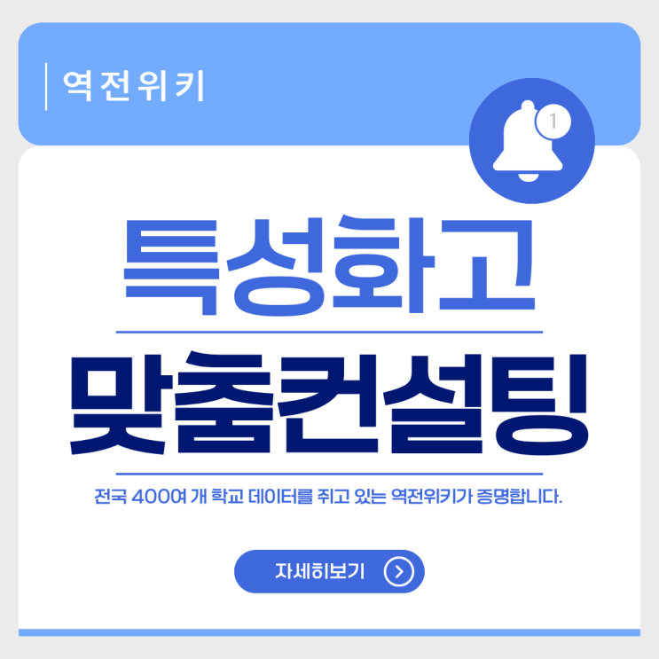 안녕하세요! 전국 400여 개 특성화고의 숨은 정보부터 입시 전략까지 낱낱이 파헤치는 역전위키입니다. ✨ 전국의 다양한 학교 소식을 전해드리다 보니 전국 각지에서 정말 뜨거운 반응을 보내주고 계십니다. 하지만 정보를 얻는 것과, 그 정보를 내 아이의 '합격 통지서'로 바꾸는 것은 차원이 다른 문제입니다. "우리 아이 성적으로 인서울이 가능할까요?" 라는 막연한 불안감을 확신으로 바꿔드리는 곳, 오늘 역전위키가 왜 특성화고컨설팅의 절대 강자인지 그 이유를 상세히 설명해 드리겠습니다. 전국 특성화고 데이터, 역전위키는 '진짜' 다 알고 있습니다! 역전위키가 일반 입시 학원과 차별....... <img src="https://blogthumb.pstatic.net/MjAyNjAzMjRfNDkg/MDAxNzc0MzE3Nzk5MjY4._EvXBTwbFy_RPrZsjytJieEUFDT7YKE7wHQ-l89g5mgg.0PdqodJ1-jLa1W00fXilW73MxgYlgjfAQamqHcj1jGUg.PNG/1.png?type=s3" />