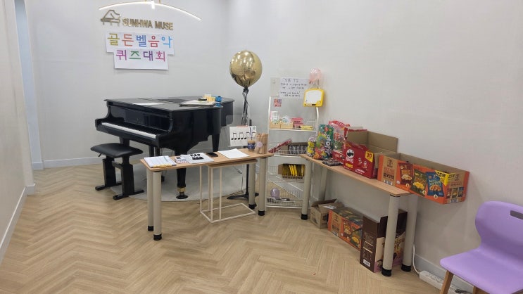 안녕하세요, 하남 미사 미사역 청아초 한홀초 미사중앙초 미사브라운스톤 인근 피아노 학원 선화뮤즈음악학원입니다 지난 2월 26일 목요일, 학원에서 손꼽아 기다렸던 특별한 날이 찾아왔어요! 바로 「골든벨을 울려라!」 네 번째 음악 퀴즈 대회 날이었답니다 ✨ "음표, 쉼표, 음악기호, 오선읽기를 맞추고 선물받기!" 열심히 준비해온 친구들의 빛나는 순간을 함께해주세요 이른 아침부터 원장 선생님이 직접 행사장을 꾸몄어요. , 아이들이 좋아할 간식과 상품들도 가득 진열했답니다! ▲ 골든벨 현수막과 상품 진열대로 꾸며진 행사장 전경 이번 골든벨 대회의 출제 범위는 평소 수업에서 꼼꼼히 배워온 음악 이....... <img src="https://blogthumb.pstatic.net/MjAyNjAzMDFfMjEg/MDAxNzcyMzMzMDE5NjAy.JTw3sLZG_6mYSMVQatsEImtF04TdElzmz0mk9Actf1kg.BSHVf6-bLltRQ8ogQ9brgiGJq7AqFH2rQzkZ8USScZwg.JPEG/IMG_9960.jpeg?type=s3" />