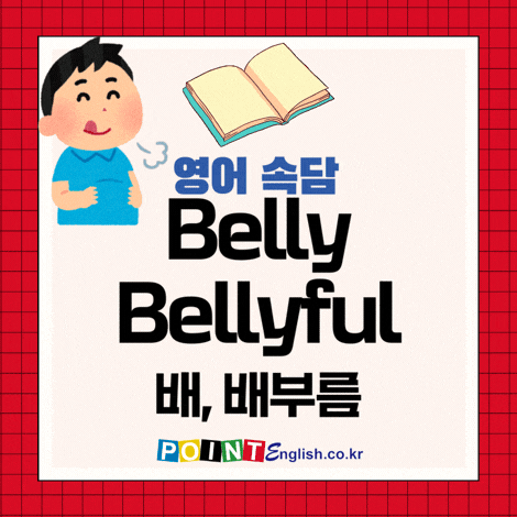 belly 배, 위장 bellyful 배 가득함 영어속담 모음, A light belly, heavy heart. 가벼운 배, 무거운 마음. 외 4개 proverbs 안녕하세요! 여러분의 영어 궁금증을 해결해 드리고, 영어 실력 향상에 도움을 드리고픈 포인트영어입니다. 오늘은 belly와 bellyful이 포함된 영어 속담 모음을 소개해 드리겠습니다. belly는 이미 배 또는 배처럼 사물의 볼록한 부분을 의미하는 것은 잘 아실 겁니다. 동사로도 '볼록하게 하다'라는 의미도 있습니다. 그런데 bellyful은 누가 봐도 형용사처럼 생겼는데 명사입니다. -ful은 '~이 가득한'의 의미를 가지고 명사 뒤에 붙어서 형용사를 만들어 주는 접미사입니다. 하지만 belly + ful....... <img src="https://blogthumb.pstatic.net/MjAyNjAyMjFfMjcx/MDAxNzcxNjQwNjgwNjYy.fiwLkvuOIaXNevbUJDppSKhbhG4pU3H6-2mQ-pNnUy4g.X-8iHKtR5dv4icG61nvEb5I_9nJNYjgLbua0XMDbgVQg.GIF/%BF%B5%BE%EE%BC%D3%B4%E3_Belly.gif?type=s3" />