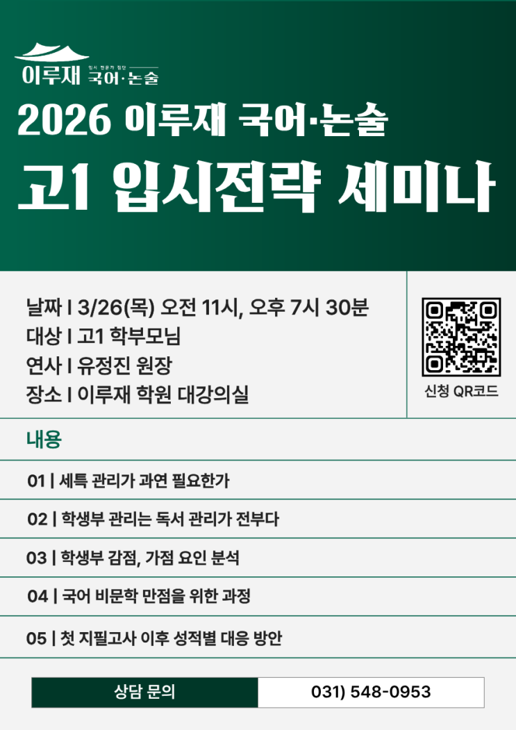 이루재 국어·논술 | [2026] 고1 입시전략 세미나 안내