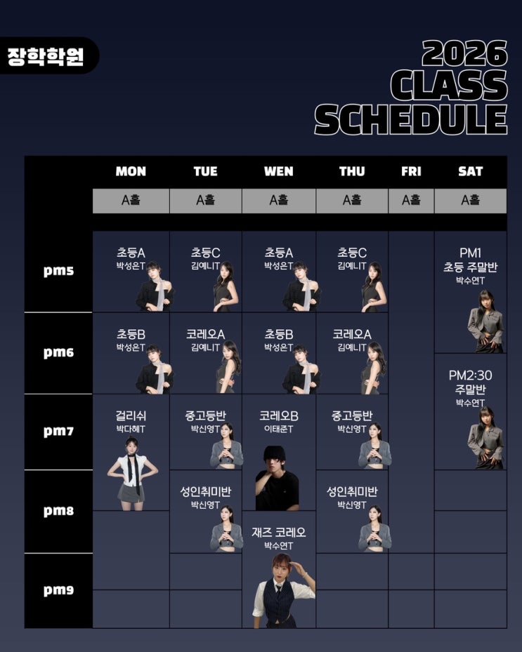 춘천댄스학원 2026년 1월 START 아라댄스아카데미 장학학원 시간표,커리큘럼