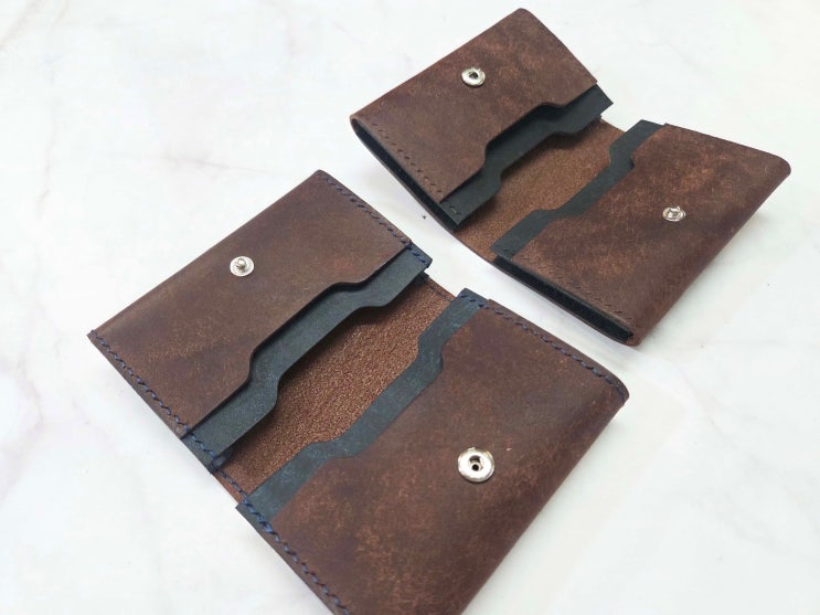 안녕하세요, 꿈과 낭만이 가득한 공간 마포구 홍대 가죽공예 기술연구소 레더오브레전드 가죽학원 입니다. (Leather Of Legend Atelier) 오늘은 친오빠를 위해 만든 여동생의 멋진 카드지갑 한쌍인데요, 기본적인 디자인은 그랜드 스타일의 더블 폴더형 카드지갑 입니다. 현재는 가끔 일일체험으로 찿는 아이템이긴 하지만 과거 큰 명성이 있던 아이템은 분명하고, 또한 명함을 300장 이상 대용량으로 사용하고자 할때 더없이 좋은 아이템이기도 합니다. 그럼 어떤 디자인을 가지고 있는지, 잠시 한번 살펴보도록 할까요? 짜잔~ 아주 멋지고 고급스런 그런 카드지갑이 아닐수 없군요. 사용된 소재는 이태리 명품 베지터블 소가죽은 푸에블로 다크....... <img src="https://blogthumb.pstatic.net/MjAyNjAzMDJfMTU0/MDAxNzcyMzc4MjA4ODUy.YUyV7FDnqrmMss4YAGuaa3u94oaQaXZmNb7tPA8n8sYg.m4t0HqAOOQor4Y-fP_lFMxkb3ynmRxWbXFYqX-6d59og.JPEG/20260225_214214.jpg?type=s3" />