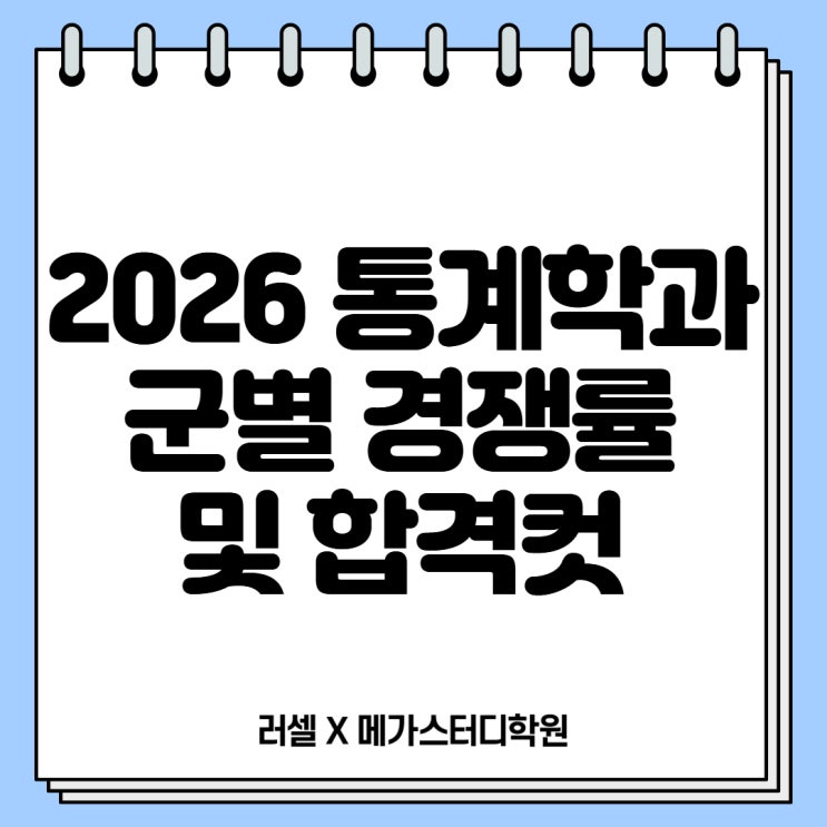 안녕하세요. 러셀X메가스터디학원입니다. 오늘은 인서울 통계학과 군별 경쟁률 및 합격컷을 알아볼까요? 입시는 기본적으로 경향성을 띱니다. 그렇기에 이전년도의 세부 정보가 있다면 합격에 더 근접한 판단을 할 수 있게 됩니다. 따라서 최근 3개년, 최소 최근 2개년의 경쟁률, 합격컷, 추가합격 등의 세부 정보를 보고 판단해야 합니다. 또한 정시는 군별 모집인원, 군별 대학 등 살펴볼 정보가 많습니다. 최근 정보를 수집해보면 경쟁률의 변화에서 최근 2개년의 경쟁률로 판단이 충분히 가능하여 여기에서는 각 2개년의 경쟁률, 합격컷, 추가합격 각 2개년을 통해 살펴보기로 합시다. 최근의 경향을 보면 2개년의 정보로도 판단할 수 있습니....... <img src="https://blogthumb.pstatic.net/MjAyNTEyMTdfNDAg/MDAxNzY1OTMxOTY2ODgw.Qc-Msj8j8b1aOltvhcqU58g-mPxW7UA8rBJbHxks0E8g.DTF582msOTozj5naEp5YExCoiOZDJdxSuq6EFUnLVjAg.JPEG/%C1%A4%BA%B8%BC%BA_%BA%ED%B7%CE%B1%D7_%BD%E6%B3%D7%C0%CF_%283%29.jpg?type=s3" />