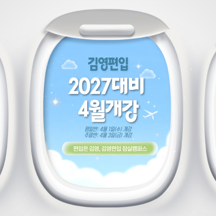 안녕하세요, 김영편입 잠실캠퍼스입니다. 27학년도 편입을 준비하는 학생들을 위해 선행반 개강 소식을 전해드립니다. 꾸준한 학습 습관과 철저한 관리로 남들보다 한 발 앞서 준비하세요! ✅ 평일반 개강 : 4월 1일(수) ✅ 주말반 개강 : 4월 4일(토) 27대비 수학, 영어 커리큘럼입니다 ✅인문계 시간표 ✅27대비 자연계 영어 / 자연계 수학 시간표입니다 김영편입 잠실캠퍼스는 학습관리 뿐만 아니라 생활 관리까지 꾸준하게 도와드립니다. 1. 등하원&학습시간 체크 2. 지정 시간 타임스탬프 인증 3. 개별 고정 자습실 인증 학습관리 - 피드백 테스트 - 정기 테스트 (데일리, 위클리, 먼슬리, 전국 모의고사) - 1:1 상담 - 질의응답 -....... <img src="https://blogthumb.pstatic.net/MjAyNjAzMTNfMTIz/MDAxNzczMzg3NTMyNzQ1.3_Sf2QrLB-odF4MmxvSinJQOOWZ1saf0YIELlKEIBIgg.-YGzqVeGxLRBlMWBJOQoBMrNFB-oHAu1aJA-Bo3XtGog.JPEG/%C1%A6%B8%F1%C0%BB_%C0%D4%B7%C2%C7%CF%BC%BC%BF%E4_%287%29.jpg?type=s3" />
