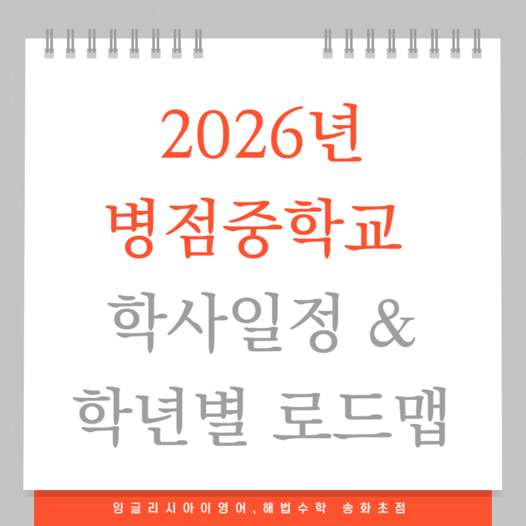 병점중학교 학사일정 확인하고 준비하세요, 학년별 영어,수학 내신전략은 달라야 합니다 중학생 학부모님들과 상담을 하다 보면 “시험기간이 다가오면 그때부터 준비하면 되는 거 아닌가요?” 라고 생각하시는 경우가 있습니다. 하지만 실제 중등 내신은 그렇지 않습니다. 중학교 공부는 시험 직전에만 몰아서 준비한다고 되는 것이 아니라, 학교 학사일정을 미리 확인하고 그 흐름에 맞춰 준비하는 학생이 훨씬 유리합니다. 그래서 오늘은 2026학년도 병점중학교 학사일정 중 꼭 체크해야 할 중요한 일정을 먼저 정리하고, 그 일정에 맞춰 학년별로 어떻게 내신을 준비하면 좋은지 말씀드리겠습니다. 병점중학교 학사일정, 꼭 체크해야 할 중요....... <img src="https://blogthumb.pstatic.net/MjAyNjAzMTJfMjc1/MDAxNzczMjQ3MTcxMTQx.bRp65q9fHroit_bIKK4T6P5MZtSFMRiqQRP-L6XShTAg.b19bbYcGqzizoSqqG5y9PEtqNUxXQ4U4yX-pWi4UU-Ug.PNG/%BC%DB%C8%AD%C3%CA%C1%A1-005.png?type=s3" />