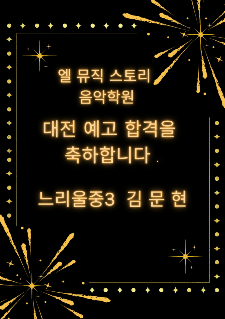 대전 예고 합격이라는 좋은 결실을 맺어준 .. 엘 뮤직 스토리의 자랑스럽고 대견한 문현이~ 늦은 피아노 시작이었지만..꾸준함과 성실함으로 좋은 결실을 이루었다고 쌤은 생각한단다.. 피아노를 사랑하는 마음으로 시작했던 피아노가 너의 꿈이되고 목표가 되어..더 큰 꿈을 향해 도전해 나아가는 너의 모습을 언제나 응원하고 칭찬해~~♡ 쌤이 너의 조력자가 되어줄께~ 2026년 신입학을 축하해~ ♡ #관저동피아노#관저동음악학원#엘뮤직스토리음악학원#입시레슨##콩쿨전문#느리울초#선유초#구봉초#금동초#관저초#선암초#차량운행픽업#0425441203# <img src="https://blogthumb.pstatic.net/MjAyNTEyMDJfMTkw/MDAxNzY0NjQ2ODAwNjM0.G3Kbf1O6A7Kul6PI2fgtp4VbR9uI5-_ih7xFYKT4o2Ig.b02XKVhDOlBBwyNQZINhpgONxi1ex5q6X-pzzGZvjvAg.PNG/900%A3%DF1764645227788.png?type=s3" />