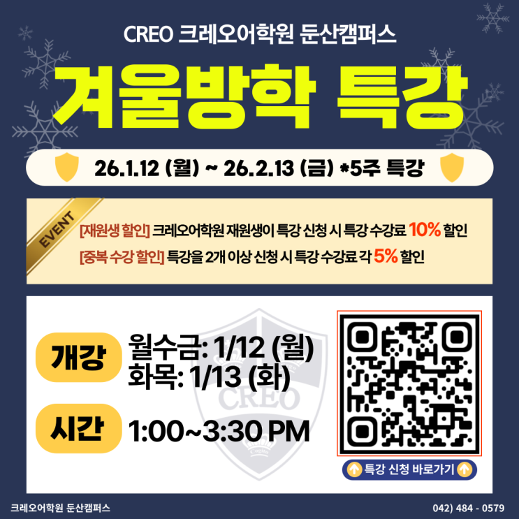 CREO 크레오어학원 둔산캠퍼스 26년 겨울방학 특강 개강!!