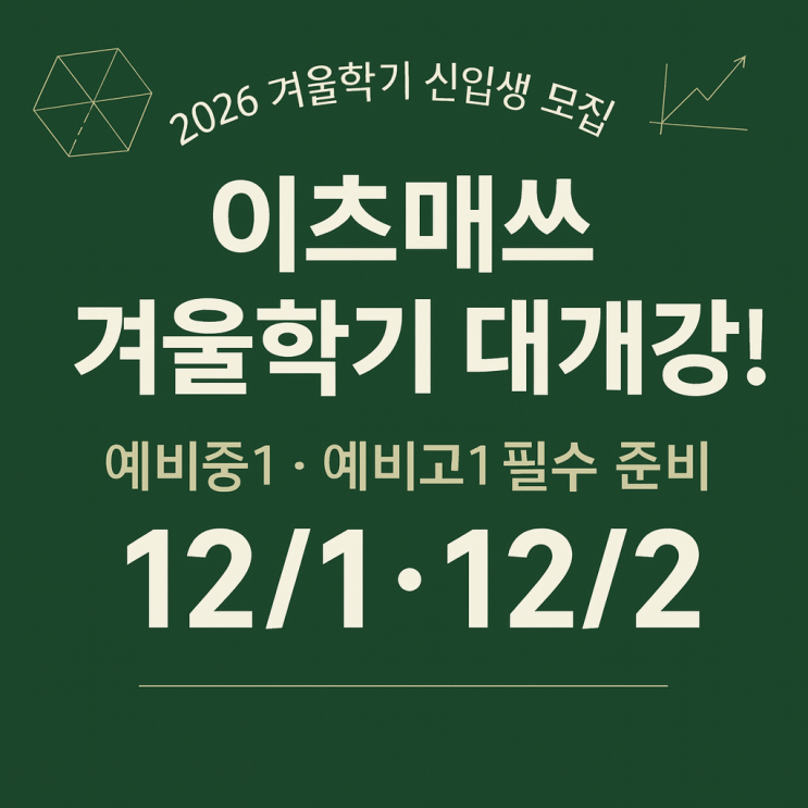 매탄동 이츠매쓰 겨울학기 대개강! 예비중1·예비고1 필수 준비 12/1·12/2