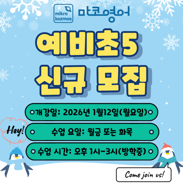 [예비 초5] 2026년 겨울방학 신규 모집